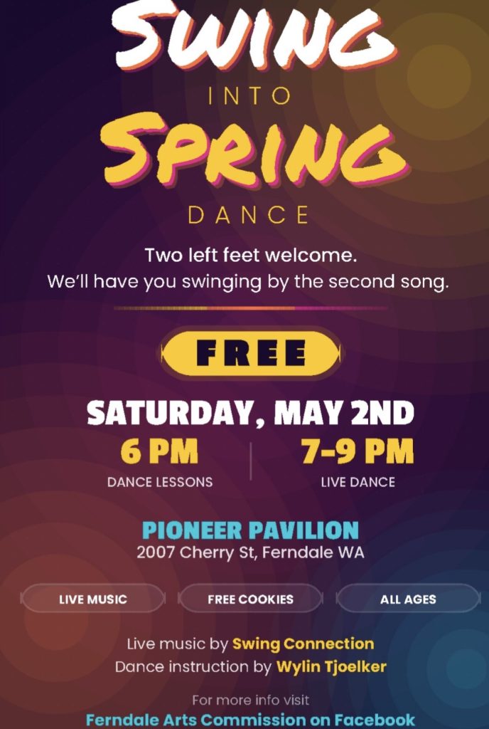 – May 2, 2026, Saturday, 7:00 – 9:00 pm. Swing Dance! Ferndale Pioneer Pavilion, 2007 Cherry St, Ferndale, WA